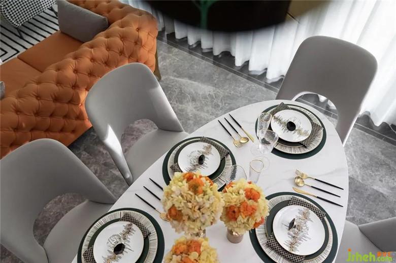 空間很大一部分的魅力來自于裝修公司將它兼容并蓄的巧妙搭配。入室,只覺鮮亮的豐盈氣息撲面而來,熨金線條平衡歐式風(fēng)格中的繁復(fù)感,輕巧漂亮的玻璃茶幾、氣息明亮的愛馬仕橙沙發(fā)使視覺亦或心跳,不覺都挑高了幾個(gè)弧度。裝修公司