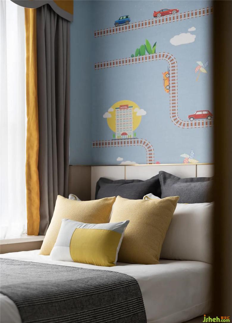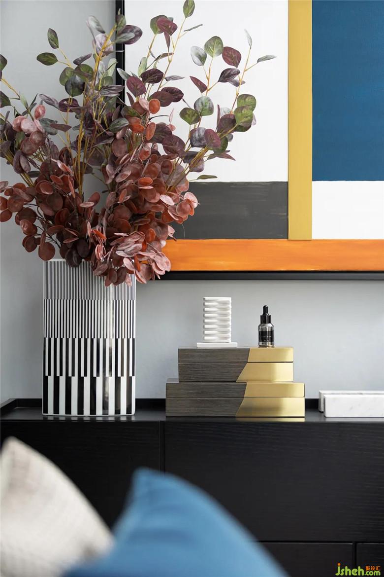 風(fēng)的流動,光的青睞,在墻面留下足跡,主臥床頭以趣味的幾何線條勾勒出個性的視覺張力,樣板房設(shè)計令空間在低飽和度的色彩中跳脫出輕靈的節(jié)奏感,生活與藝術(shù)在此靜謐融合。