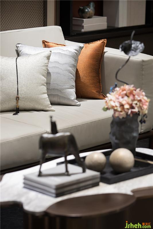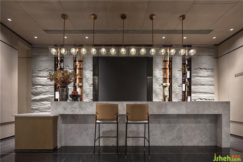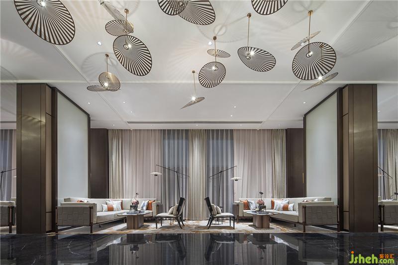 設(shè)計(jì)以一種「喧囂表像,內(nèi)隱閑情」的方式對(duì)話空間與人,只余經(jīng)美過濾后的本質(zhì)——典雅、舒適。景有浮翠星荷,扇里麥香,設(shè)計(jì)觀物取象,嵌入芭蕉扇與精美紋路的燈飾,形成精巧的時(shí)尚氣息,傳達(dá)出一種令人愿意親近且感到愉悅的氛圍。