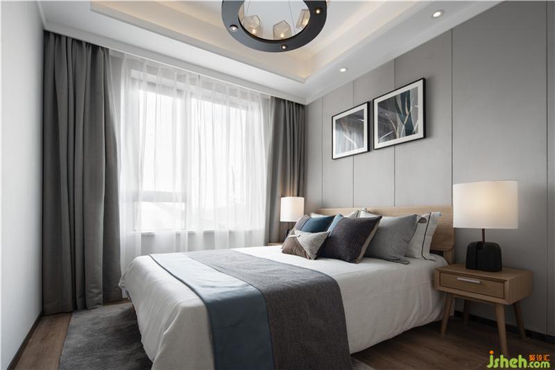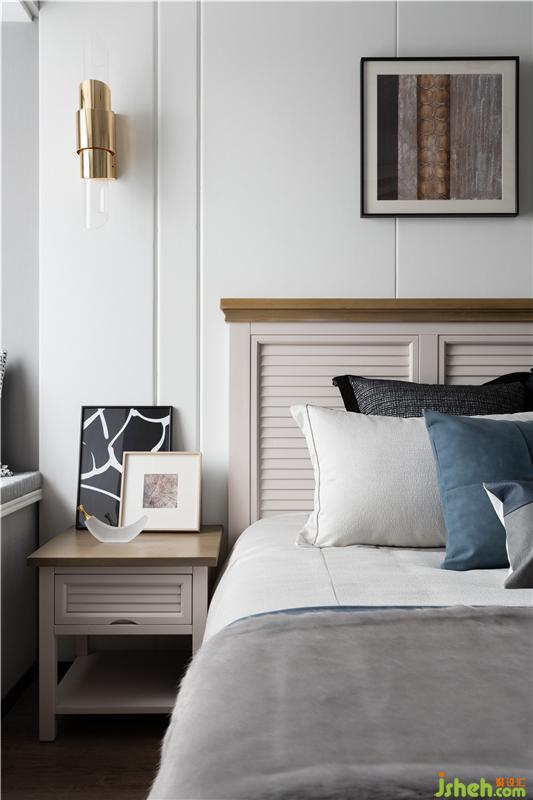留足思緒,讓純凈在此處律動(dòng)。潛藏其間的是高級(jí)而不浮華的生活方式,木地板與淺灰的護(hù)墻圍護(hù)空間的體塊,讓空間更顯柔和,黑色臺(tái)燈與云朵質(zhì)感般的床品,演繹夢(mèng)中的藍(lán)色多瑙河……