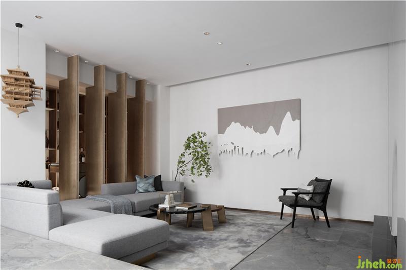 將云霞雕色,轉(zhuǎn)化成馥郁沉穩(wěn)的一方寢居,精致與溫柔,俊朗與活潑,都不乏其中。黃銅背景墻正如潑墨堆棧的畫幅,讓清雅與古樸在空間滌蕩。
