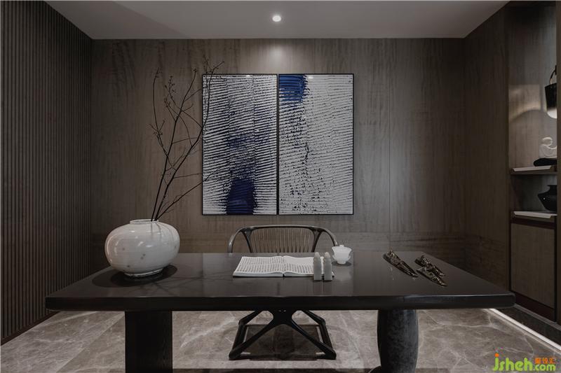 尤其在臥室,吊頂因客觀因素,借鑒中式徽派為設(shè)計(jì)靈感,結(jié)合實(shí)際梁位打造出不一樣的吊頂。利用帶有潑墨的山水畫意境的石材,加入藍(lán)色作為調(diào)色,在整個(gè)空間中具有錦上添花之作用。使得置身于其中而吐故納新、恢復(fù)元?dú)?,盡情受益于其輕松、休閑和愜意的氛圍。