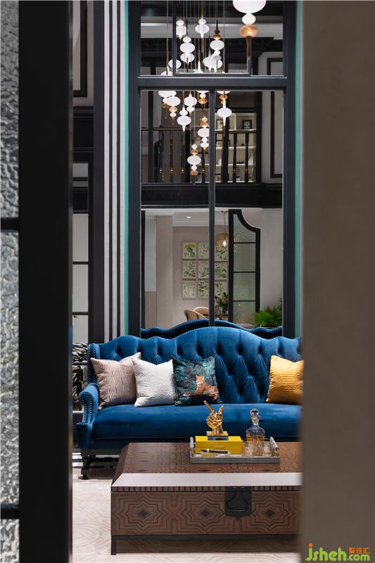 進入party區(qū),超挑高法式拱門勾勒大廳的敞闊感,空間恰到好處的線條點綴,產(chǎn)生新與舊的對話。休閑區(qū)實用性必不可少,party區(qū)一側細致地安排了酒吧區(qū)及酒窖,大面積的黑色搭配,為空間投下一道重彩。