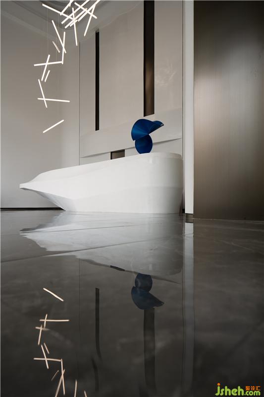 開卷之初,往往是人們最期待的時刻。們從熟悉的城市現(xiàn)實走近建筑,進入室內(nèi),開啟一段新的時空之旅。直覺性的審美是將光影的魅力發(fā)揮到極致,然后光線變成為了藝術(shù),空間的心緒在布局中展現(xiàn),從外觀到內(nèi)省,探索或修復,一切好奇、治愈、回憶被收入室內(nèi),情緒與室內(nèi)設計、燈具、藝術(shù)作品、生活氣息相互交纏著、對話著,徹底滲入人的身心。整體空間將白、灰、藍色運用的恰到好處,一點點柔和的檸檬色在一片寧靜安謐的氛圍中展現(xiàn)跳躍的生命力。