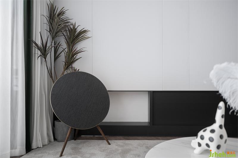 關于室內(nèi)的陳設構思,我們希望保持這一種干凈的感覺,連續(xù)且有詩意的空間。為這幕單色背景加入異色的是顏色和諧的馬尾鐵和Beoplay環(huán)繞家低音炮音響,溫暖的定制壁爐等等,輕盈、明亮的空間氛圍點亮了日常。