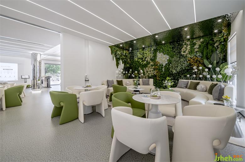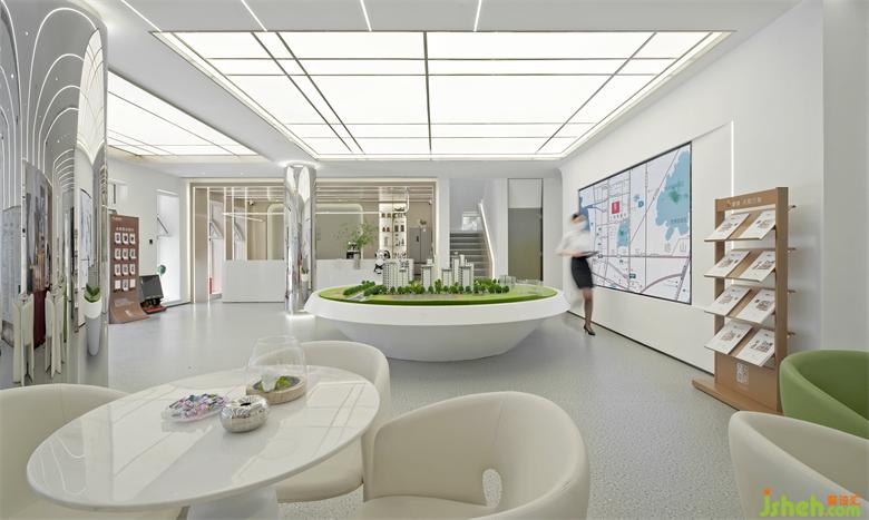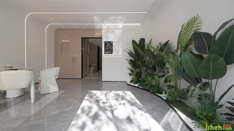未來、科技是萬物互聯(lián)的時代基礎(chǔ)。品牌區(qū),沙盤與洽談區(qū)相互呼應(yīng),一覽城市未來愿景。人人參與共建的新區(qū)藍圖,在空間語意的轉(zhuǎn)譯中傳達。樣板房設(shè)計形式和功能還應(yīng)加入精神的統(tǒng)一,而藝術(shù)裝置就是精神的載體,舒展蔓延,綠植鑲嵌,讓未來的多元可能融入日常公共生活。