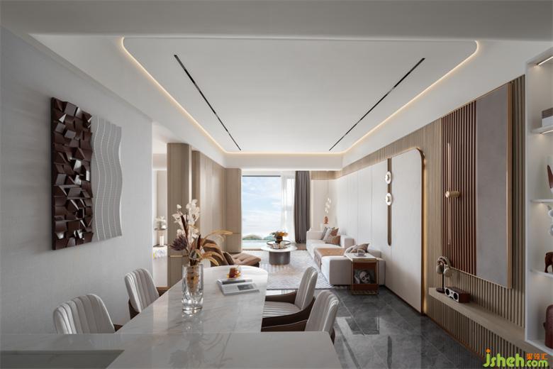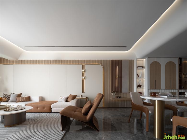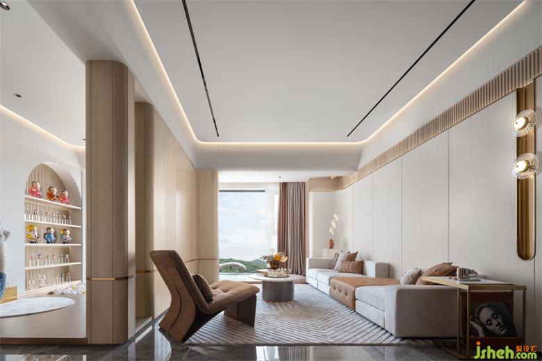 設(shè)計(jì)語言干練而獨(dú)特,體現(xiàn)著對(duì)生活的極致考究以及新消費(fèi)時(shí)代下的奢居探索。樣板房設(shè)計(jì)其質(zhì)樸純粹的場域精神,打破界限,為建筑增添靈魂,予人家的歸屬與期待。