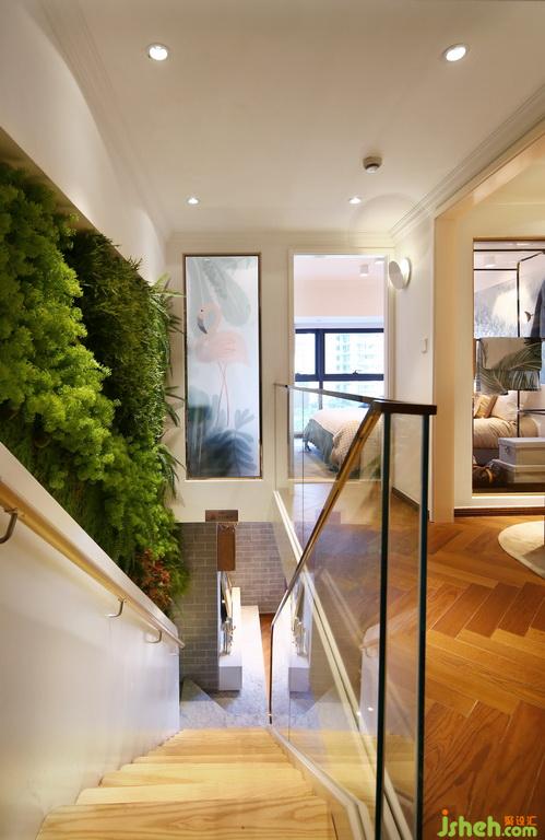 復(fù)式空間,樓梯往往是平衡上下層最為重要的功能流線,設(shè)計(jì)師讓樓梯間與二層公區(qū)都沒有被生硬劃分的感覺。