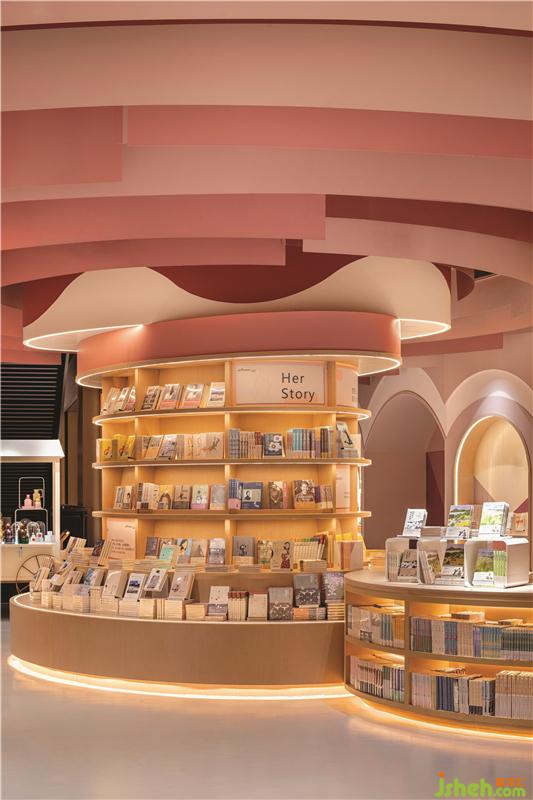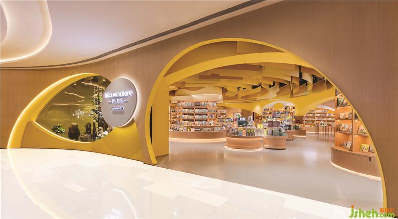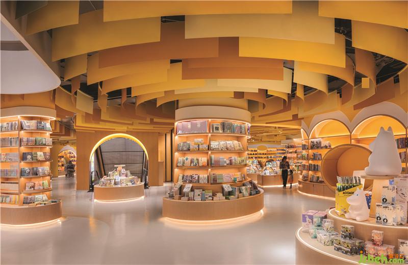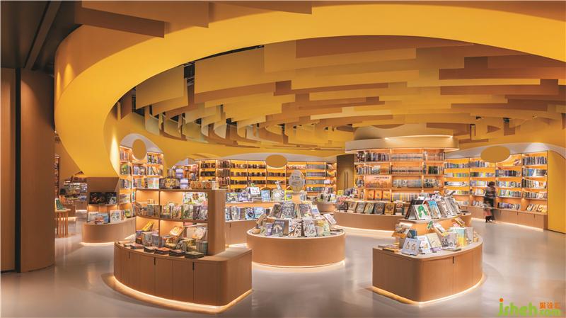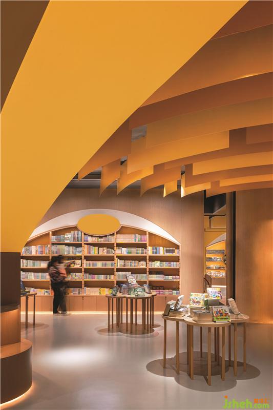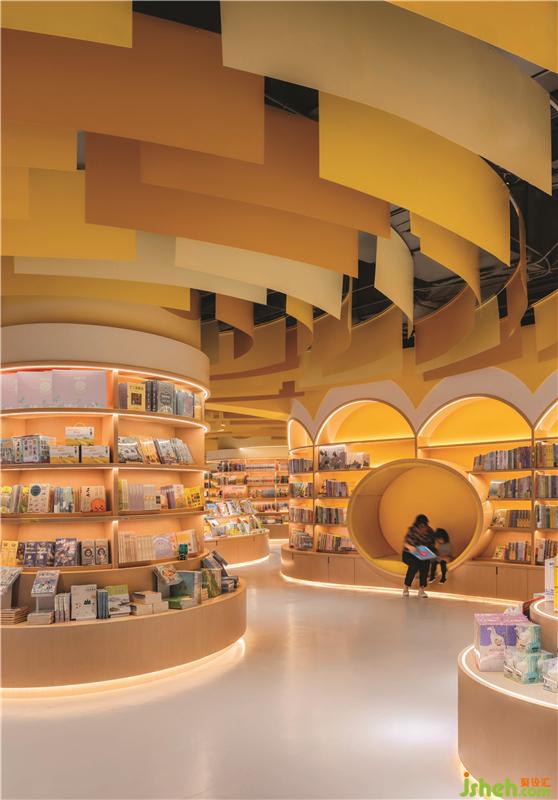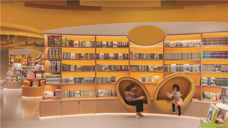 不同的曲線組合創(chuàng)建了具有不同隱私級別的閱讀區(qū)域。閱讀洞穴使父母和孩子可以專心讀書。兒童書店設(shè)計圓型特色柱提供了主題產(chǎn)品展示和座位功能,并成為每個區(qū)域的焦點。