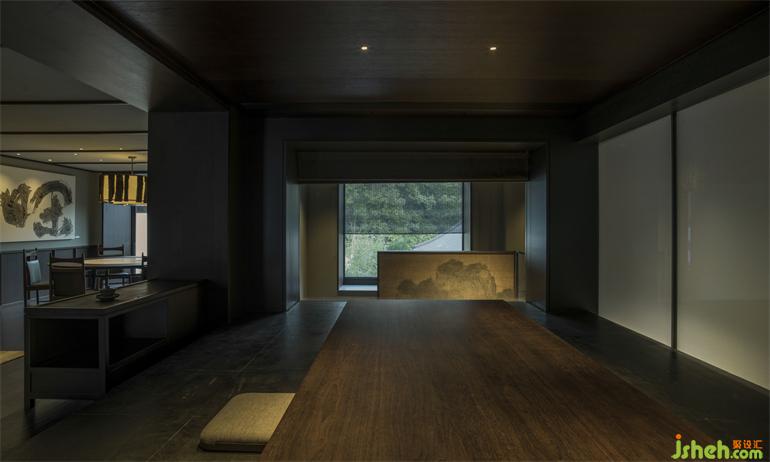 綢帶般縈回的走廊,如鳥展翼般排列的飛檐與并排相向的柱體,自未央而連南面包廂,趨向幽深迷離。南京會所設(shè)計兩面并列升起的包廂,似有歡聲縈繞,絡(luò)繹不絕,與庭院的建筑、景觀相映成趣,處處皆景。
