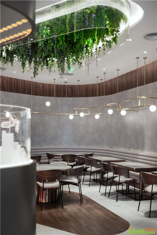 天花的設(shè)計采用生態(tài)主義,綠植垂直而下讓室內(nèi)的空間顯得生機勃勃,茶餐廳設(shè)計也象征著餐廳充滿生機,寓意著生意蒸蒸日上。簡約的金屬吊燈以及其他的燈帶都屬于暖色調(diào),讓整個就餐氛圍更溫馨。茶餐廳給人傳遞的是一種舒適休閑的感覺,所以要注重色彩的亮度,尤其在燈光或者裝飾材料上,茶餐廳設(shè)計以暖色系居多,明亮的燈光有刺激用餐者食欲的功效。