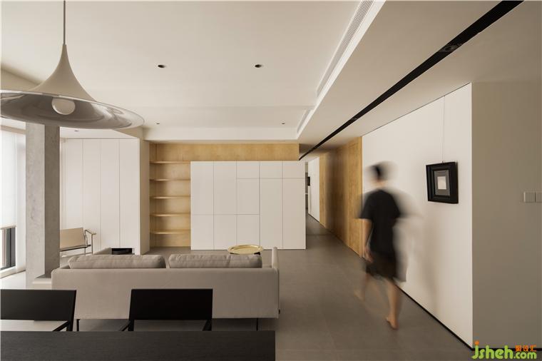 大平層裝修設(shè)計(jì)拆掉了離客廳最近且朝南的房間,調(diào)整布局通過(guò)客餐廳一體化的直觀,得到活動(dòng)動(dòng)線上的自由,主背景是木色的轉(zhuǎn)折、連續(xù),時(shí)隱時(shí)現(xiàn)成為整個(gè)空間面的涂底。