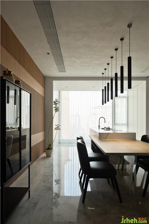 豪宅設計比例分割和使用面的虛實疏密,都被深色拉近對比,只在空間中留下這一份深刻的烙印。