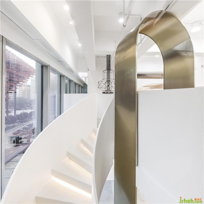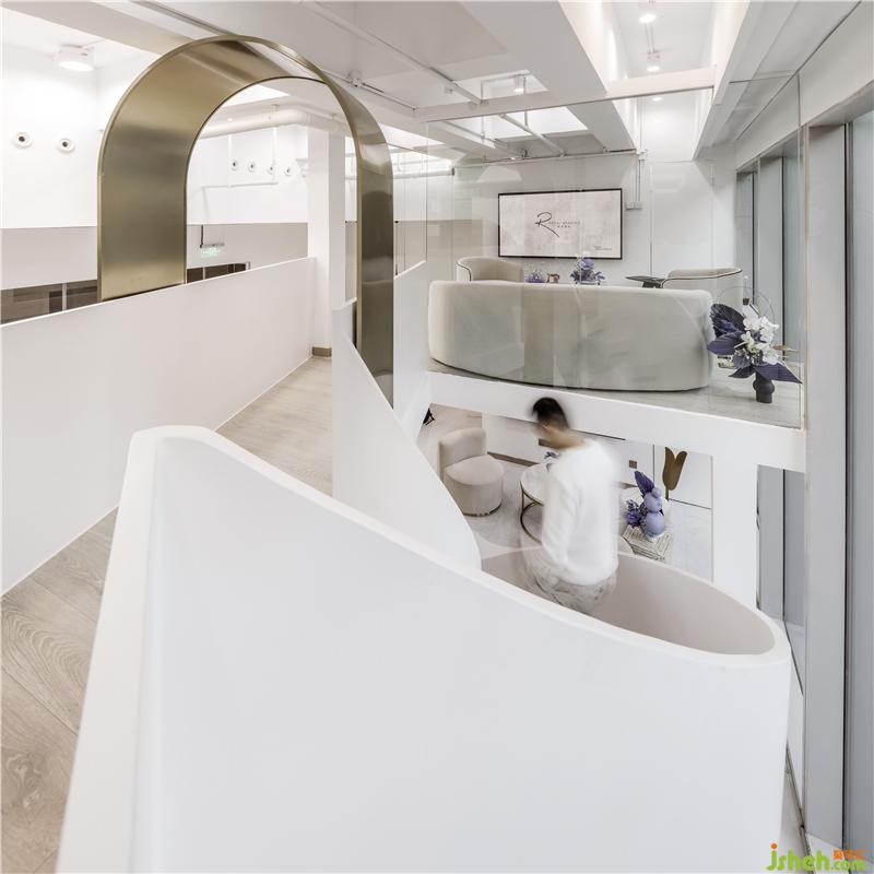 再加上以同心鎖為元素的金色圓弧進行裝修設(shè)計,
