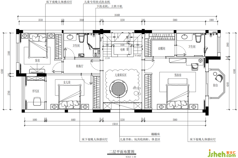 二樓是屬于孩子們的娛樂天地,配置完善的私人空間做到了休閑學(xué)習(xí)兩不誤。公共空間則是共同的娛樂區(qū),孩子們可以在這個空間中盡情的玩耍,編織自己那天馬行空的夢想。