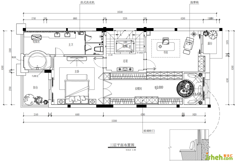 三樓是男女主人的私人空間,套房式的設(shè)計,保證了其私密性,也更大限度的滿足了男女主人各自的愛好習(xí)慣。在交互上,我們也設(shè)計了靠窗的環(huán)形區(qū)域,背靠美麗的山城,男女主人能在這方獨屬于自己的天地中互訴衷腸。
