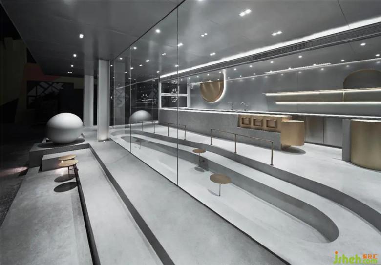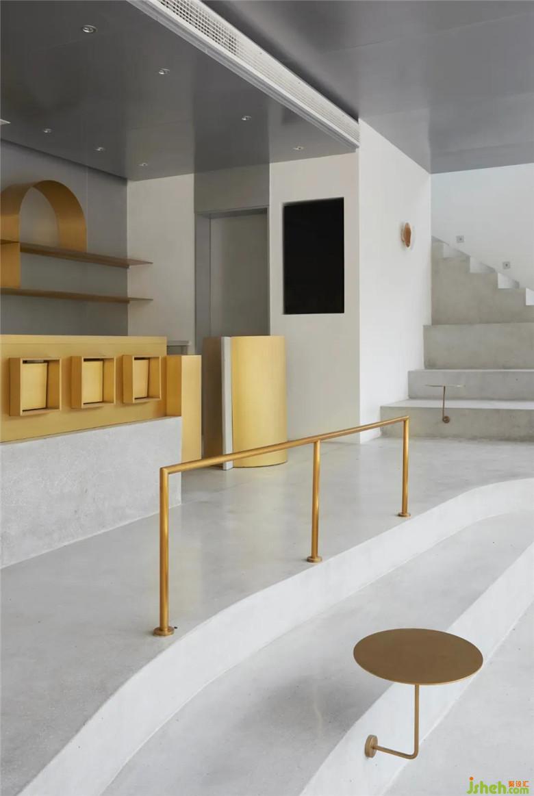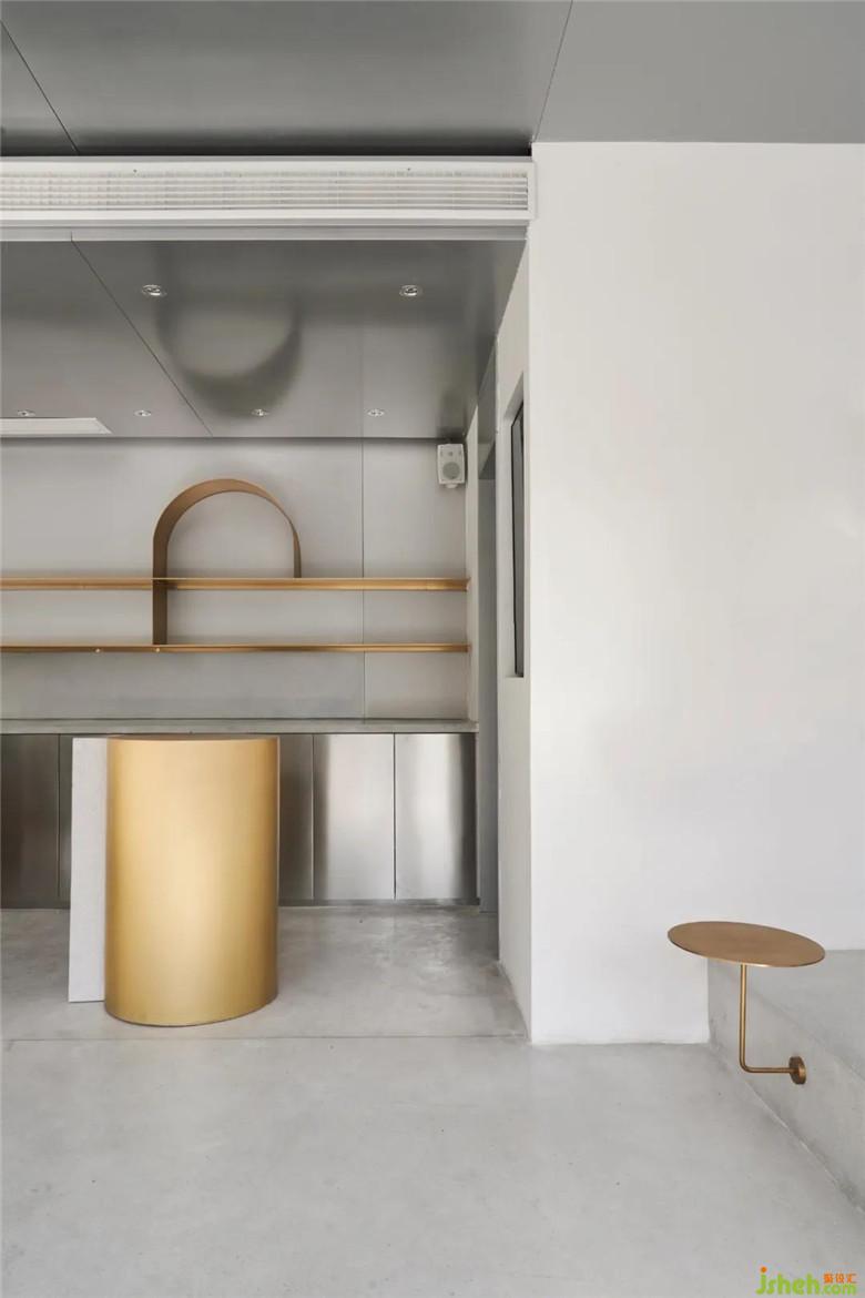 空間構(gòu)思從鏡頭、快門、相機(jī)皮腔出發(fā)作為三大基本樣式,裝修公司以此展開延伸,將6m*16m的體塊部分作3層劃分,依次為:MOOM DRINK; 攝影學(xué)院;攝影工作室。MOOM DRINK區(qū)域以大面積的鋁板與玻璃作為主要材質(zhì)以獲得極具現(xiàn)代感的空間質(zhì)感,形成整個(gè)品牌的第一視覺體驗(yàn)。