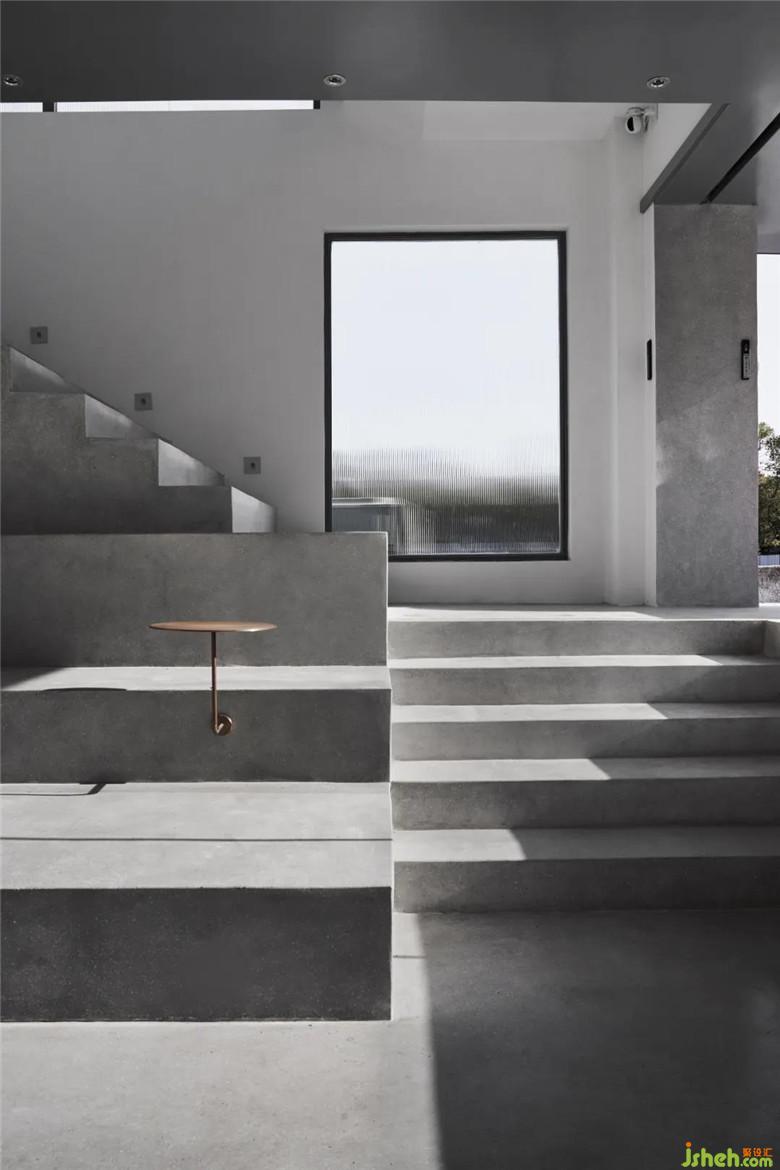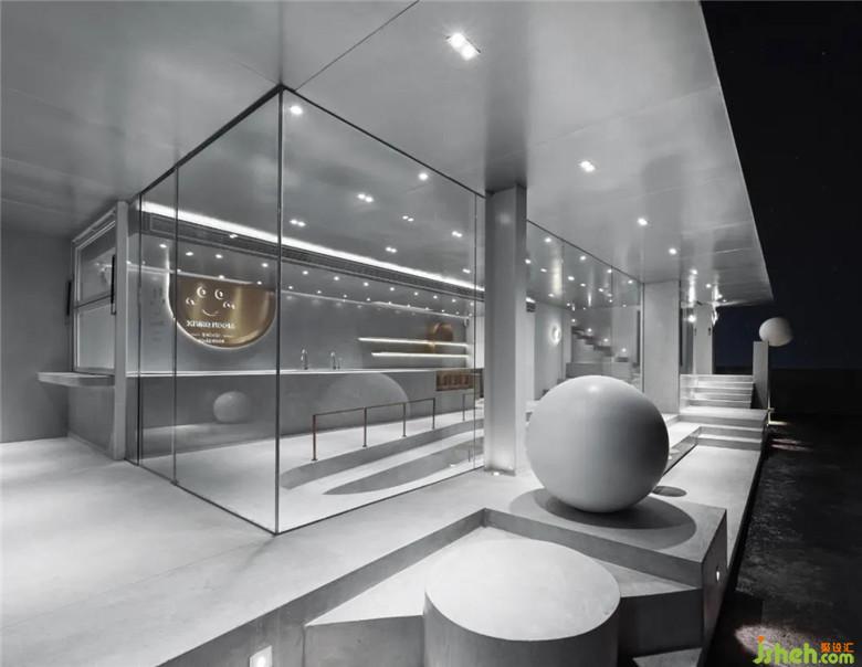 夜晚從外部觀察,整個(gè)一層成為一個(gè)透明的發(fā)光體,裝修公司使建筑呈現(xiàn)懸浮的狀態(tài),營造出具有強(qiáng)烈記憶點(diǎn)的視覺效果。