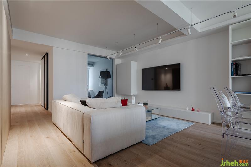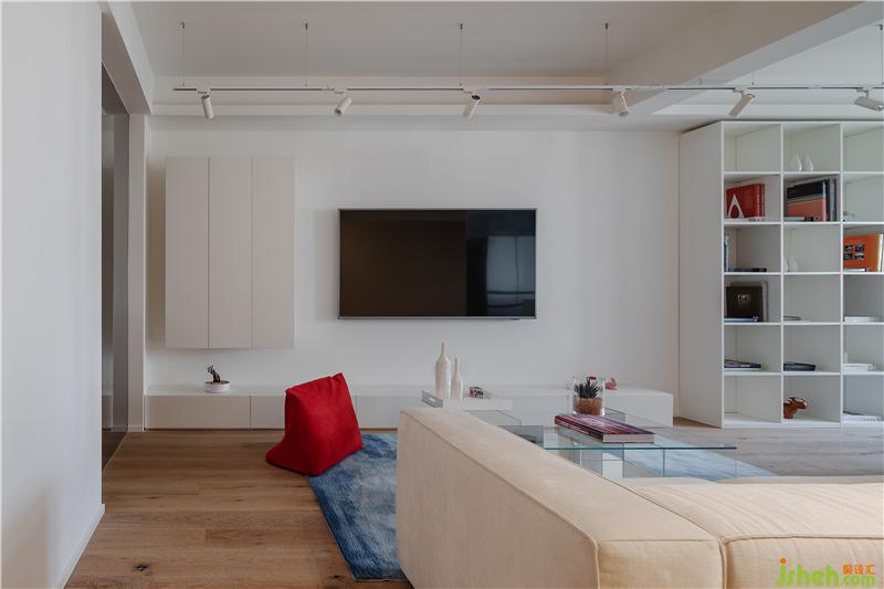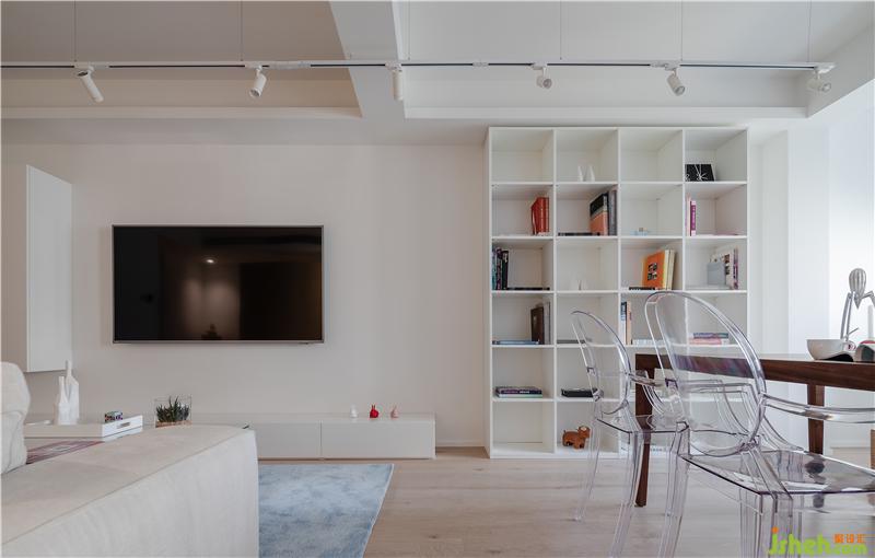 1、原客廳面積較大,傳統(tǒng)能動的墻體全部進行了拆除。拆除過后為避免入戶的空洞和“直接”感,進門處設(shè)置一組柜子扮演類似玄關(guān)的緩沖角色,柜子選用輕盈溫和的淺木色系,它的存在對大空間而言是一種微妙的分割,這種分割并不破碎而是刻意且有序,令整體有了更漂亮的層次感和延伸性,同時還具有嚴(yán)謹(jǐn)?shù)墓δ茏饔茫簭母叨壬峡矗褡禹斆媾c墻面之間預(yù)留30公分的距離,弱化整墻給人的橫亙感和阻撓意味;裝修設(shè)計從長度上看,柜子長度被控制在整條通道的黃金分割點上,往右可以繞過柜子就近來到客衛(wèi)、廚房和客廳,往左則就近到達(dá)書房、小孩房和主臥。(往左方向的過道相對較長,因此盡頭設(shè)立一個端景裝置,令空間更加生動。)