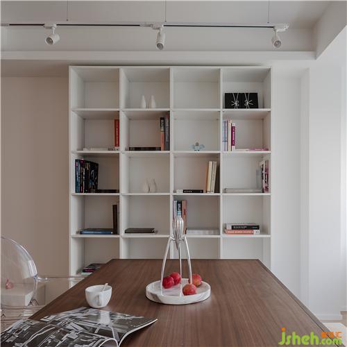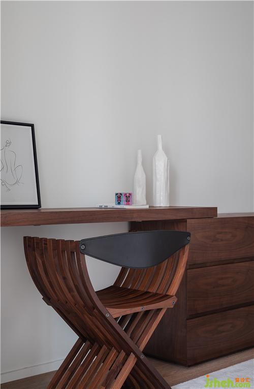 6、品承設(shè)計(jì)團(tuán)隊(duì)認(rèn)為,書房是一個(gè)家里文化氣息的中心,應(yīng)該被最大限度地展示,因此書房同樣采用偏敞開式設(shè)計(jì)。裝修設(shè)計(jì)兩面大玻璃窗,一面對客廳區(qū)域進(jìn)行日光的輸出與補(bǔ)充,一面對主臥形成造景和連通。除了閱讀,這里也是工作、喝咖啡的休閑空間,定制實(shí)木書桌貼著朝南窗戶而立,充沛的光線將滿室熏染得明亮而柔和,臺(tái)燈則彌補(bǔ)了夜晚的照明需要。以后家中如果真的添了小二,這里就可以通過最低成本的改動(dòng)變?yōu)槎⒎快`活使用。