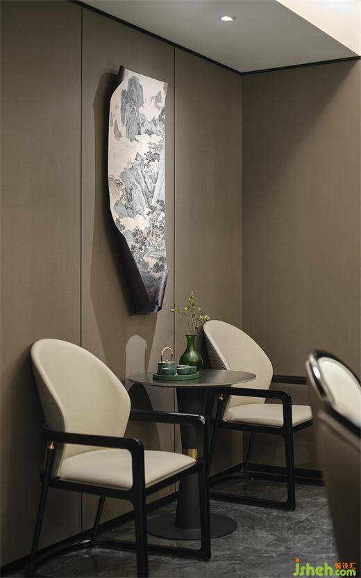 設計師以水墨畫為靈感源頭,將東方美學貫入其中,實現(xiàn)空間的創(chuàng)意表達。