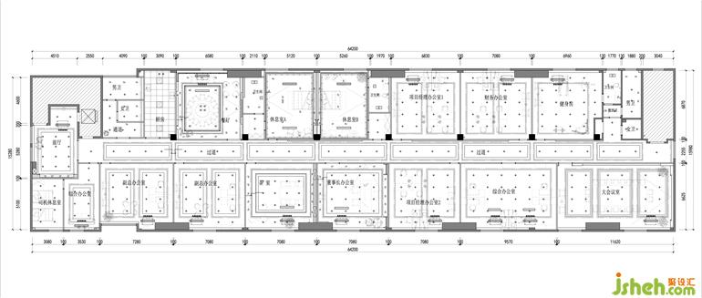 在細(xì)密有致的排列中綴以燈帶,使光影的明暗與線條的層序性形成對比。商務(wù)辦公樓設(shè)計(jì)表達(dá)個(gè)性化的室內(nèi)空間,突顯會(huì)所不拘一格的優(yōu)雅。