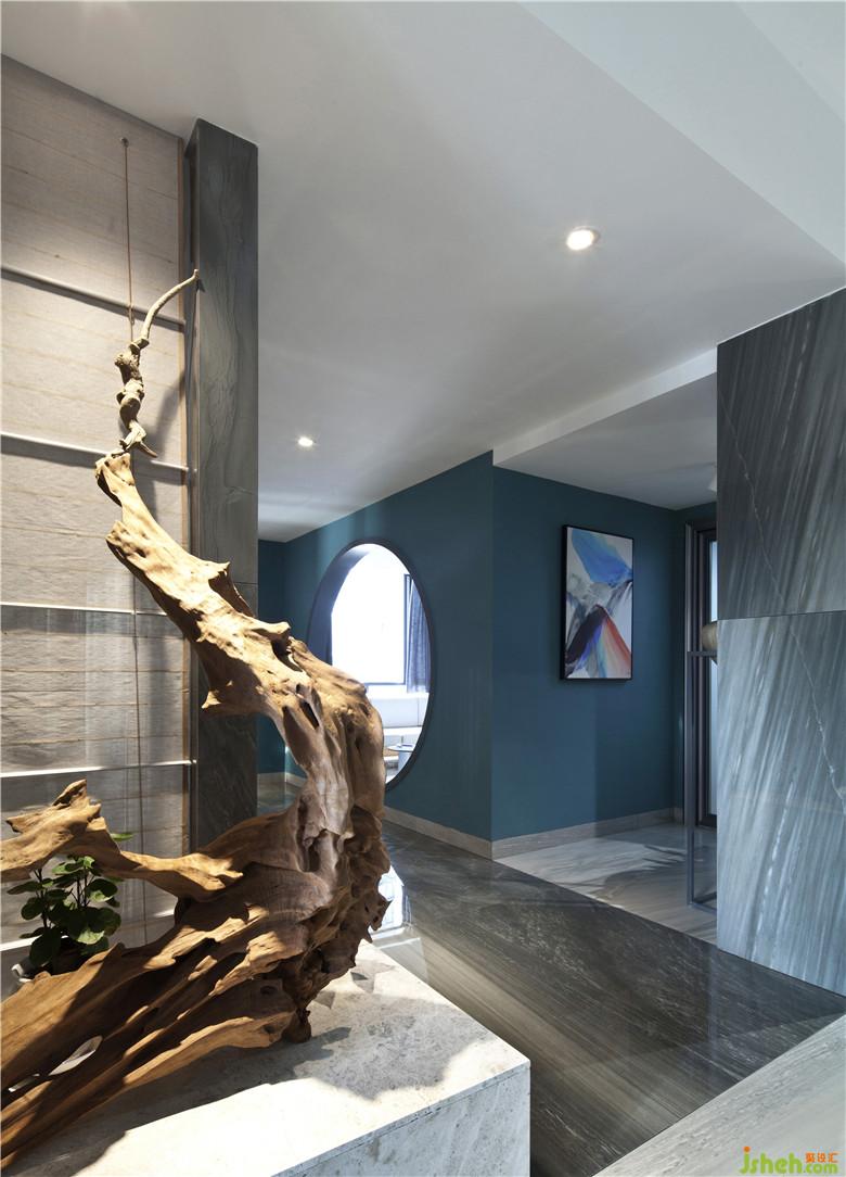 運(yùn)用了中國(guó)文化的“隔”、“障”、“框”、“透”等手法來(lái)分隔組合空間,整體視覺(jué)流暢,半遮半掩的花格和布簾等,隔而不斷,避免了空間設(shè)計(jì)中的死角區(qū)域,保證空間之間的通透性、獨(dú)立性以及連貫性,猶抱琵琶半遮面,中式傳統(tǒng)元素為空間增添些許文化意蘊(yùn)和趣味。