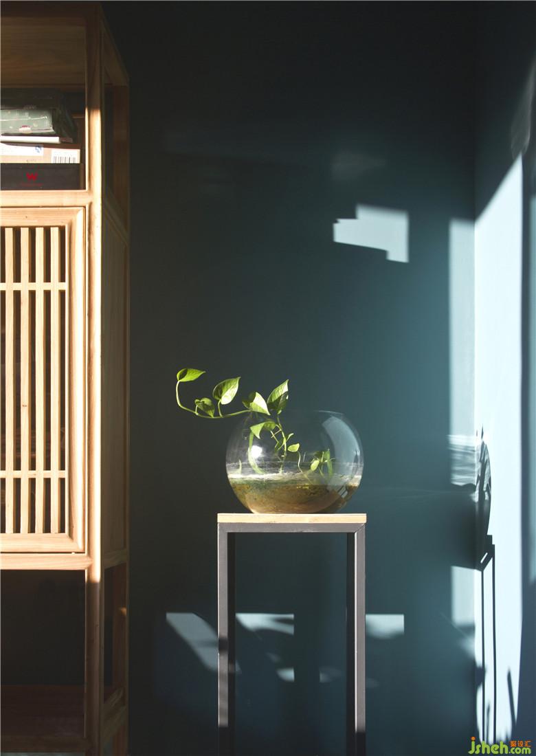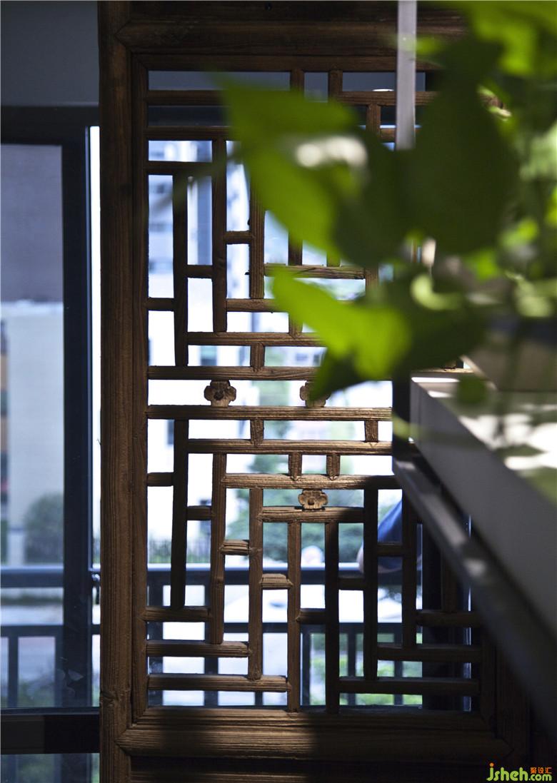 因為對老物件的情有獨鐘,幾扇老門窗通過現(xiàn)代設(shè)計手法賦予其新的使命,斑駁帶有歲月痕跡的老水缸、殘缺的小石磨、質(zhì)樸的朽木根、生機盎然的小綠植......古今碰撞,禪意漸濃。