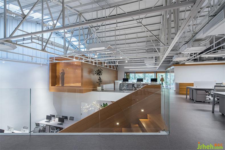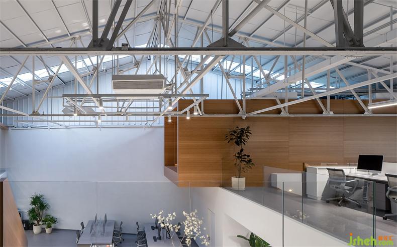 普悅設(shè)計最大限度地保留了原建筑結(jié)構(gòu),辦公室設(shè)計是對歷史的回望和尊重。屋頂?shù)母脑齑蜷_一部分天窗,引入的自然采光勾勒出屋梁鋼結(jié)構(gòu)富有幾何節(jié)奏的線條。光影隨著時間而變,猶如在面向未來時,那些非確定性所帶來的特別體驗。