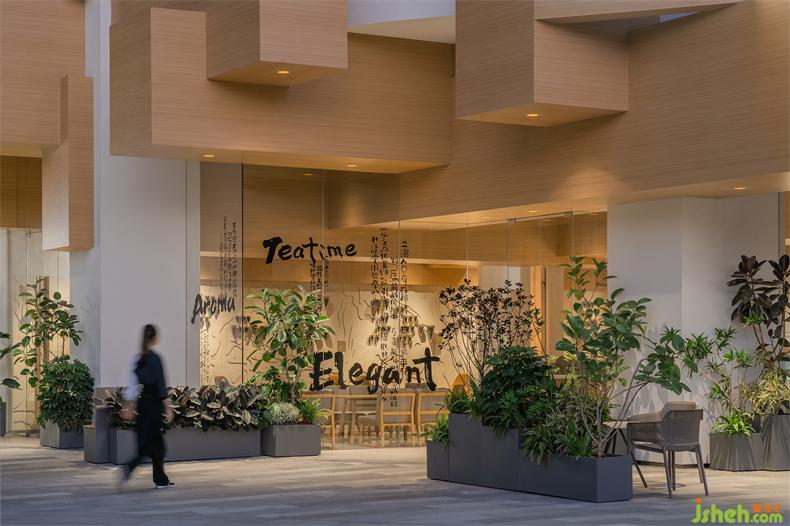 普悅設(shè)計(jì)以現(xiàn)代手法表現(xiàn)秦漢梁柱,榫卯結(jié)構(gòu)融入其中,梁由室內(nèi)空間生長(zhǎng)至外立面,形成足以擊穿時(shí)空的壯闊感,也帶來Christopher Nolan式的未來意境,形成tea'stone獨(dú)有的文化氣候和“茶香繞梁”的古今意境。