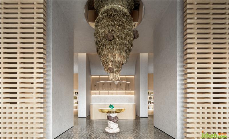 本案中多個藝術(shù)裝置,均采用了紙漿這一新型材料。紙漿的環(huán)保性、可再生性、可塑性甚至文藝感等優(yōu)點值得青睞,但其不可測的變數(shù)也是設(shè)計師須去把控和解決的。