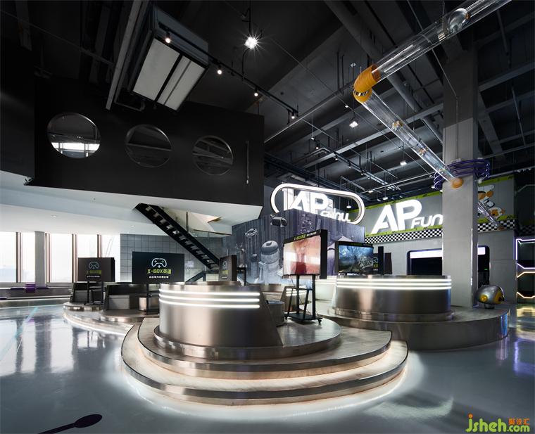 二層空間是構(gòu)建了一個半開放式的休閑空間,潮玩運動空間站設計造型以太空艙為靈感,用不銹鋼和亞克力結(jié)合的主題框架呈現(xiàn)了一個不規(guī)則的空間延伸,滿足年輕人打卡拍照,餐飲小食的社交場所。