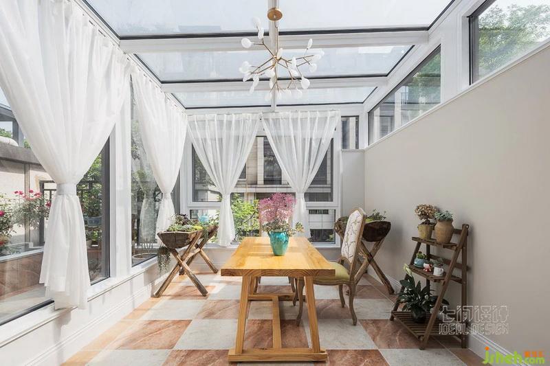 樓上的露臺,封一部分做陽光房,另一半露天花園。冬天和春天,在這里喝茶看書好愜意,夏天的夜晚,這個空間也格外浪漫,抬頭仰望星空。