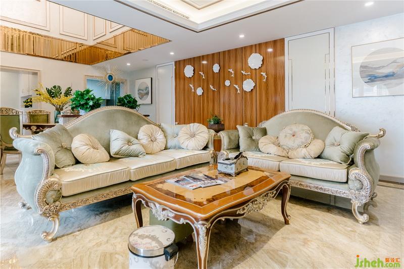 綠色是最能展現(xiàn)自由新生激發(fā)活力因子的顏色,充滿著治愈效果,將人的思緒帶到更廣闊的天地;而金色則將視覺拉回華麗都市,感受時尚的視覺效果和精致的生活氛圍。硬裝造型上貫穿始終的金色和軟裝上不同層次的綠色,將精致生活細膩表達。