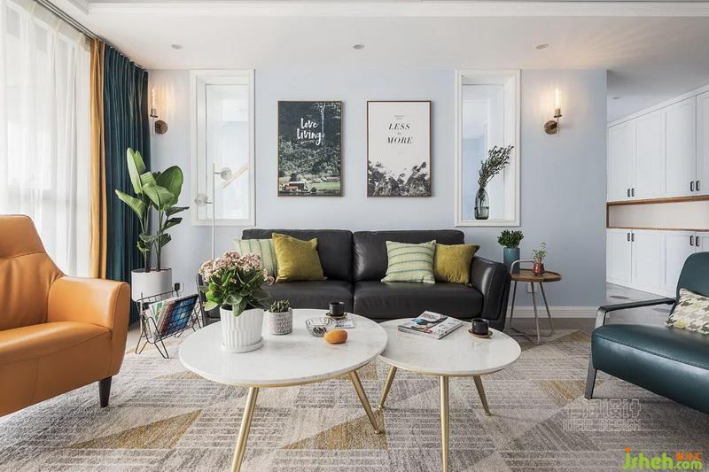 盡管兒子還在上幼兒園,但這個(gè)家的設(shè)計(jì)都有小朋友的意見參與,比如小朋友最喜歡的顏色是藍(lán)色,所以整個(gè)家的主色調(diào)是淡淡的藍(lán)色,再配以黃色和墨綠色搭配,營造清新自然的居家氛圍。