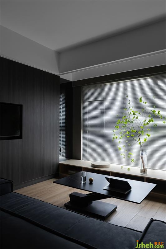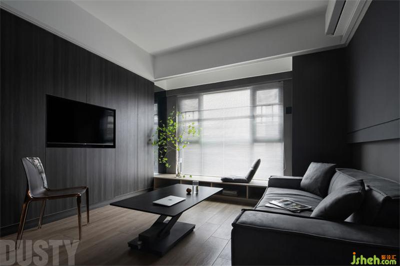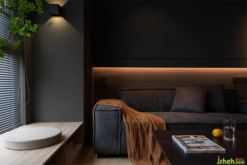 設(shè)計師希望空間是干凈整潔的,電視機(jī)是黑色的所以組合柜全部采用深色,深色沙發(fā)是我想要的,后面的造型也刷成了深灰色,考慮到是居住空間,地面設(shè)計了原木色木紋磚,這樣空間不會那么壓抑。