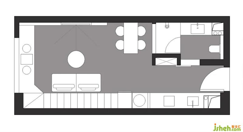 地面是Loft裝修設(shè)計(jì)師特意選擇的亞光灰磚,減少光污染。