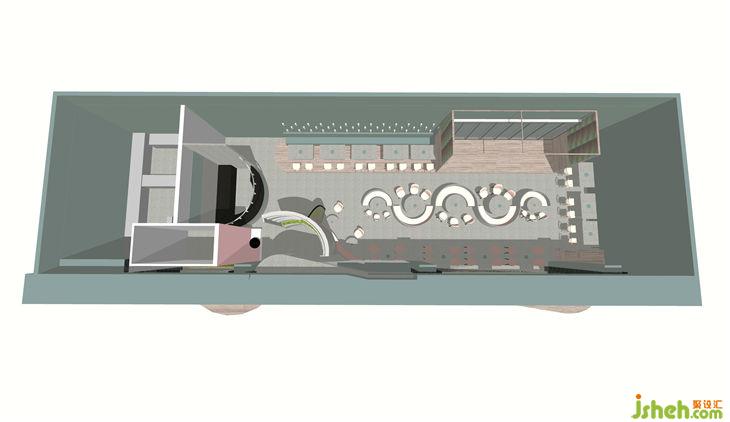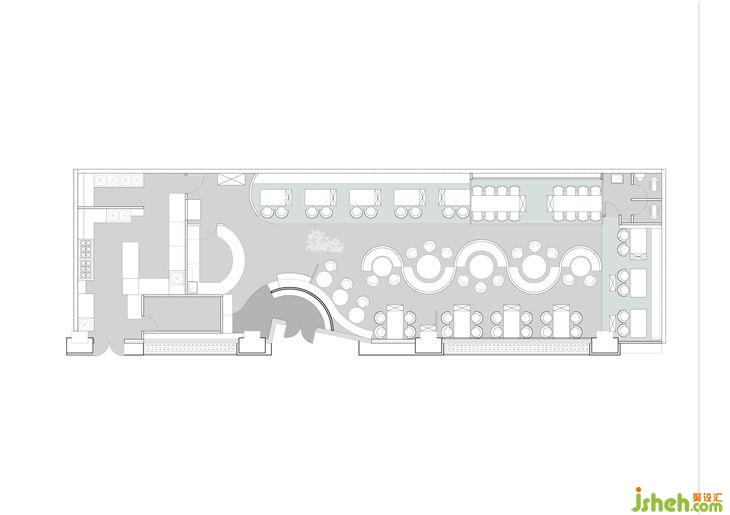 弧形卡座區(qū)弧形卡座與頂面吊燈的結合,劃分出卡座區(qū)和通道的空間同時增加氛圍感