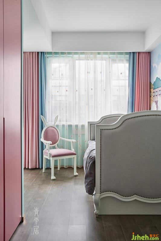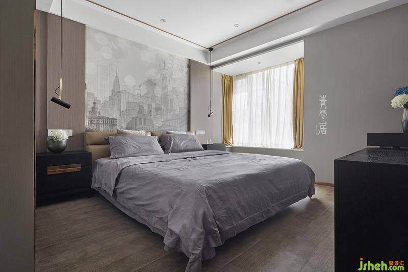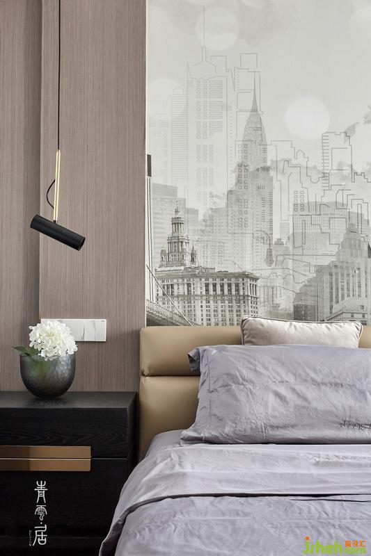 ▲臥室地面工字鋪貼木地板,空間上使用點(diǎn)光源式筒燈和床頭吊燈,KD板+壁紙做為床頭背景墻,吊頂用金色不銹鋼做走邊,墻上淺亞麻色壁紙過(guò)渡到香芋紫床品,搭配黃色窗簾,為臥室注入溫馨的色調(diào),將質(zhì)感與簡(jiǎn)約延續(xù)。