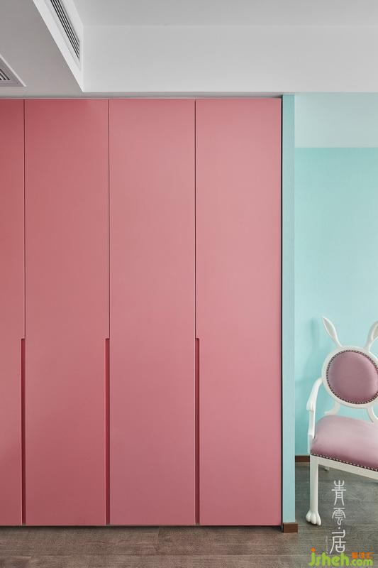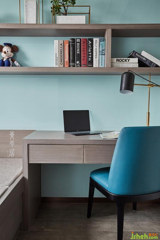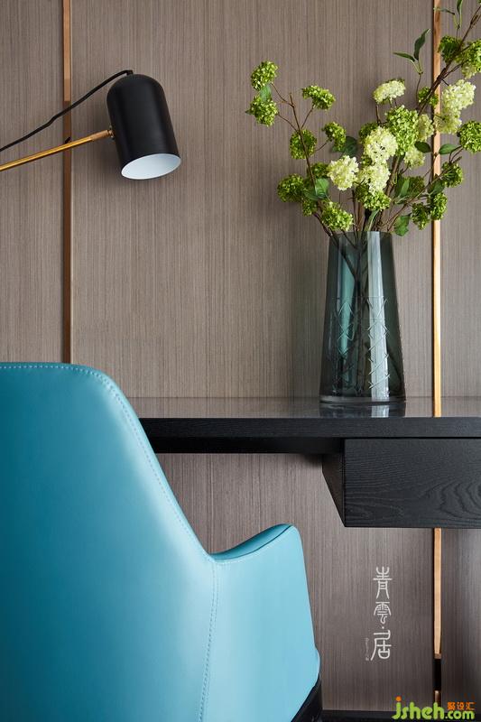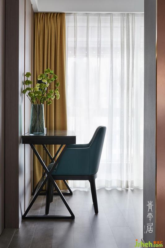 ▲主臥設(shè)計(jì)成了一個(gè)套間,進(jìn)門(mén)處是衣帽間+休息室的結(jié)合,香芋紫沙發(fā)與主臥顏色相互映襯,姜黃色點(diǎn)綴出舒服與活力間的平衡感。臨近陽(yáng)臺(tái)擺放桌椅,光線(xiàn)充足,休息室兼具梳妝臺(tái)的空間。
