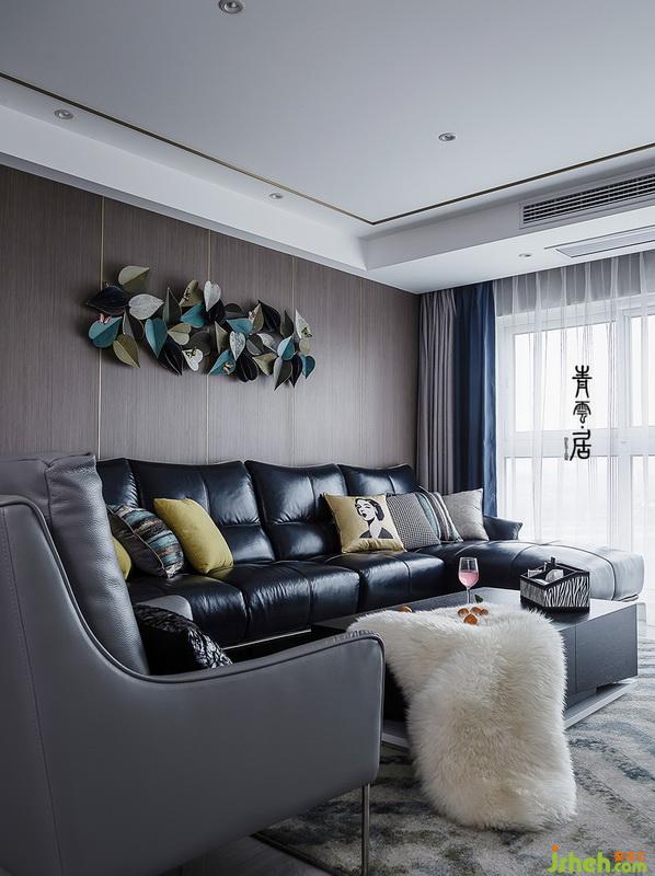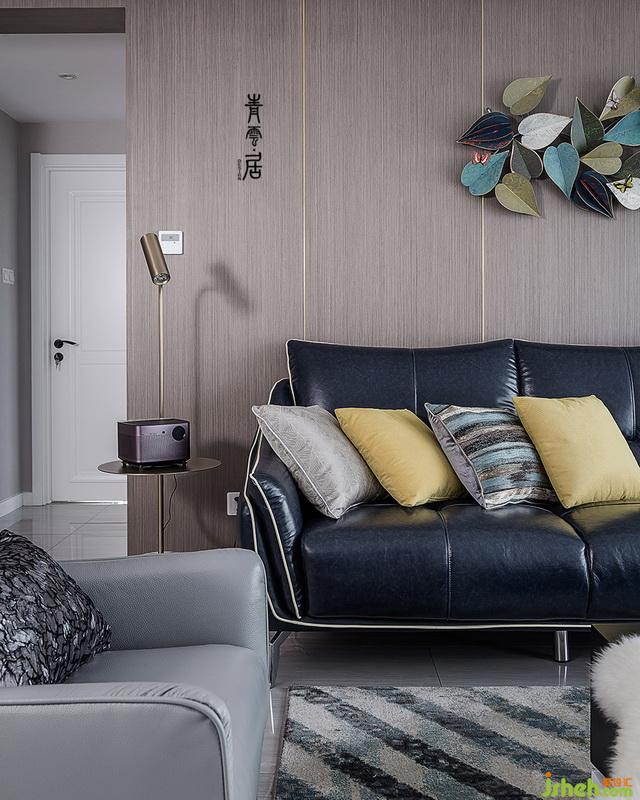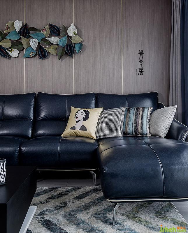 ▼ 墻面裝飾、抱枕、地毯的選擇對于整個色彩效果起點亮作用。