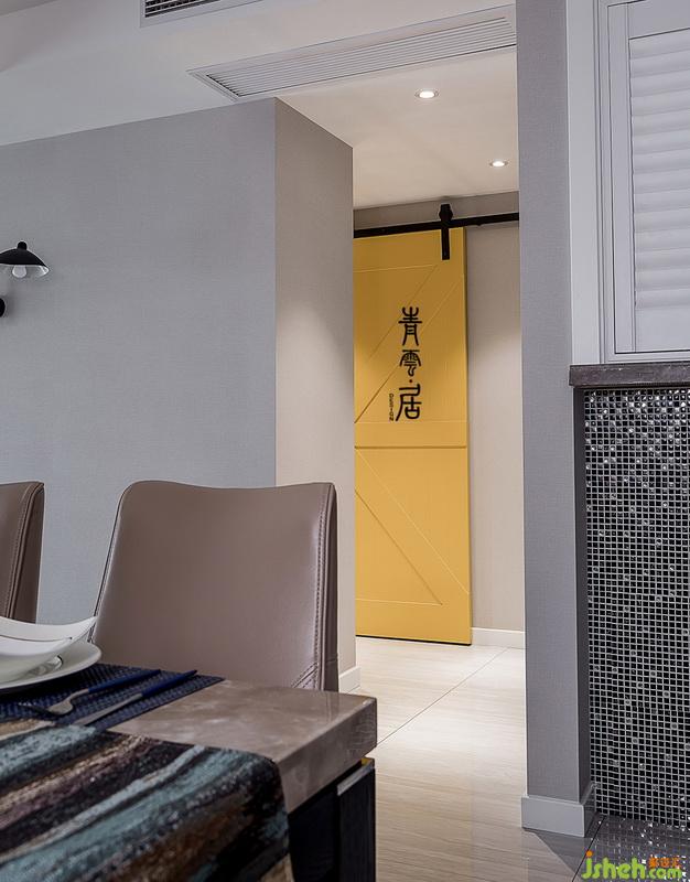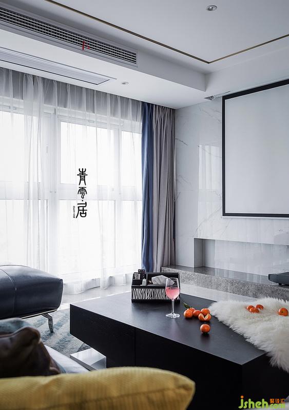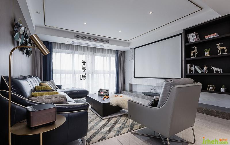 把傳統(tǒng)的電視機換為投影幕布,一家人閑暇時窩在沙發(fā)上看看電影,后面設(shè)計公司采用大理石紋瓷磚上墻,且用大理石做了電視柜。懸掛裝飾柜用來修飾,既不主張追求豪華復(fù)雜風(fēng),而著力表現(xiàn)區(qū)別與其它住宅的區(qū)別。