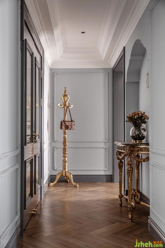 簡(jiǎn)約典雅的走廊,溫柔的背景色,精致的石膏線條搭配華麗的家具,有著輕奢而不濃重,華麗卻不浮夸的美感。