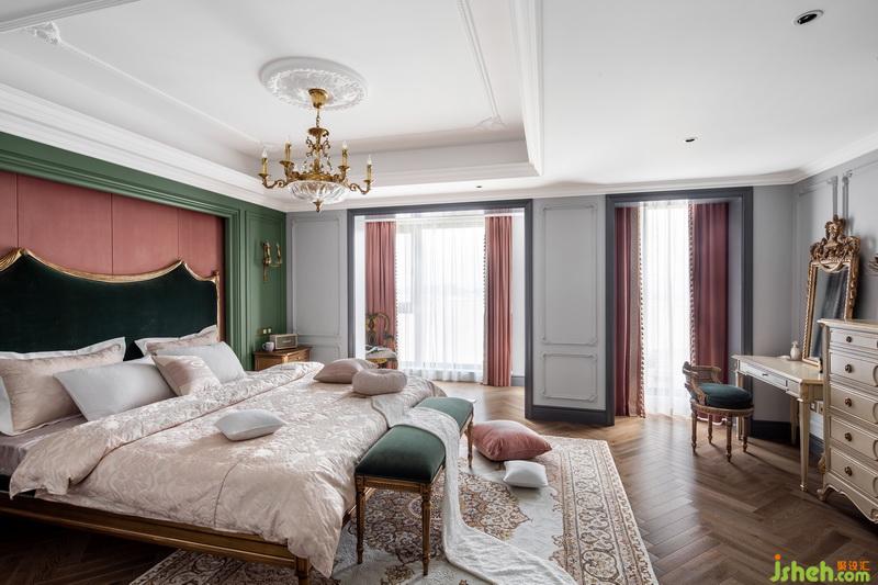 生活中最重要的地方當(dāng)屬臥室,它是我們最能放松下來(lái)享受的空間。主臥的視覺(jué)中心聚合在床頭背景,皮粉色與綠色形成撞色或互補(bǔ)色調(diào),給予最為直接的視覺(jué)沖擊,而純色床上織品與地毯又注入了一點(diǎn)柔美,起到很好的緩和作用。 大面積的落地窗更讓自然光線毫無(wú)保留的傾斜入室,獨(dú)特的色彩與微妙的色調(diào)形成了一種平衡與和諧。