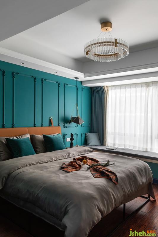 室內(nèi)設(shè)計(jì)師和業(yè)主雙方在前期溝通中,業(yè)主很明確想要將臥室裝扮的個(gè)性不失溫暖,背景墻增加了石膏線條,主色調(diào)延續(xù)了藍(lán)色為主題,讓人留戀不已。