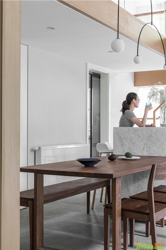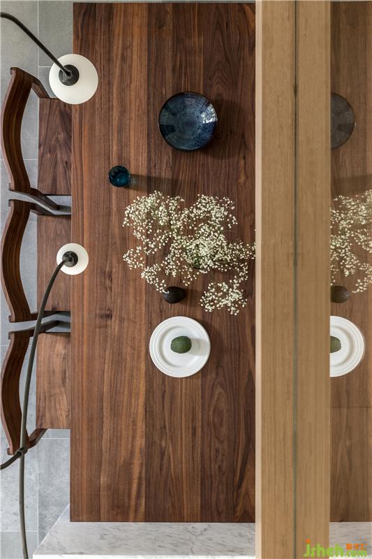 本案室內(nèi)設(shè)計(jì)師非常注重細(xì)節(jié)的設(shè)計(jì),每一處尺寸、物品的擺放如此別致精巧,無(wú)形中美化了餐廳的用餐環(huán)境,視覺(jué)效果非常的讓人驚艷。餐桌與吧臺(tái)相結(jié)合,回歸簡(jiǎn)單的幸福生活,實(shí)木家具具有獨(dú)特清晰的紋理,散發(fā)著木材特有的香氣和來(lái)自森林的自然氣息。注重質(zhì)感的白色大理石吧臺(tái),打破空間,卻又不喧賓奪主,很好的融入其中。