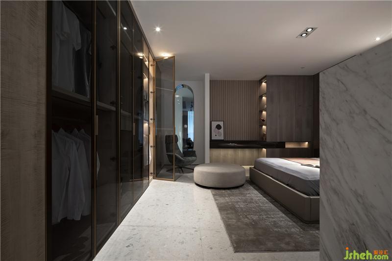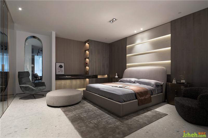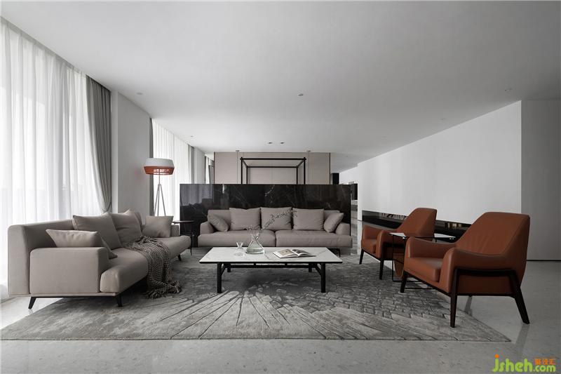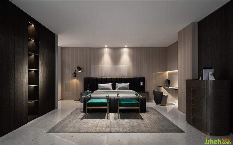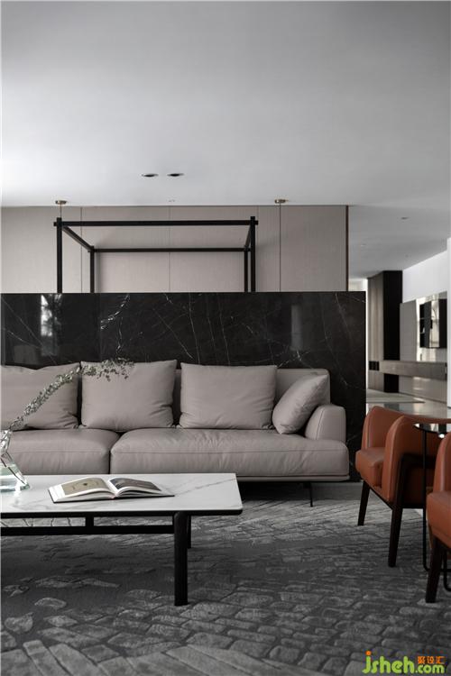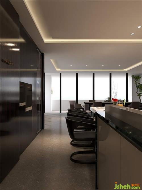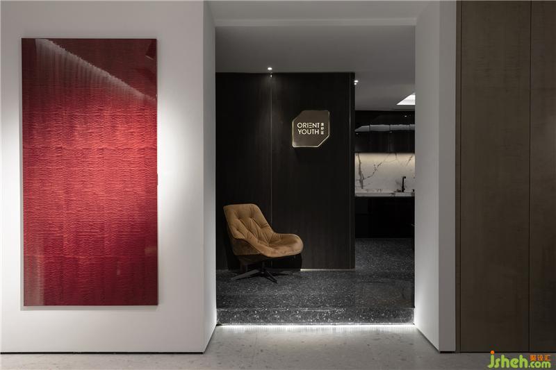 最后是餐廚會(huì)客廳,醒目的紅色壁畫,低調(diào)奢華的黑色櫥柜,無(wú)主燈設(shè)計(jì)。利用墻體和材質(zhì)之間落差,來(lái)進(jìn)一步強(qiáng)調(diào)空間的視覺縱深感和層級(jí)遞進(jìn)關(guān)系。會(huì)所設(shè)計(jì)