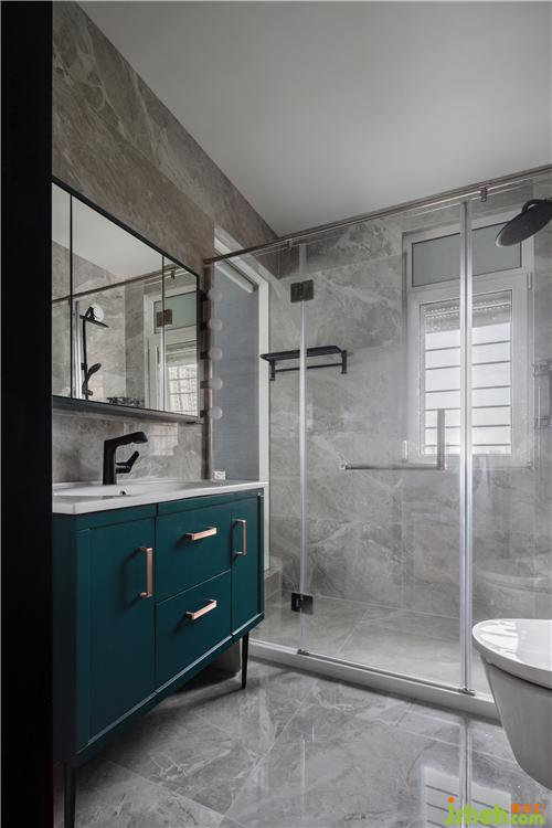 主臥內(nèi)的衛(wèi)生間除了設(shè)置玻璃隔墻外,還增加了移門給空間更多的互動(dòng)串聯(lián)。玻璃隔墻的設(shè)計(jì),光線和空間的高緯度融合,在視覺與感官上得到一種平衡,移門的設(shè)定,在開啟與關(guān)閉的形態(tài)下,完成多過個(gè)生活場(chǎng)景的轉(zhuǎn)換,也為空間增添了趣味性。室內(nèi)設(shè)計(jì)師