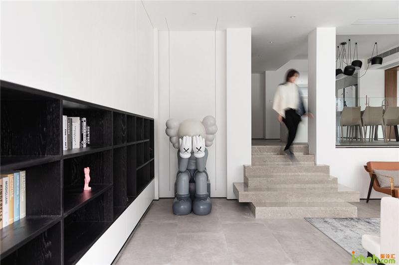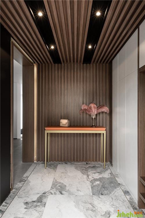 玄關(guān)立面和頂面的線條杭州別墅裝飾設計,采用同一材質(zhì)同一元素達到視覺延伸效果。