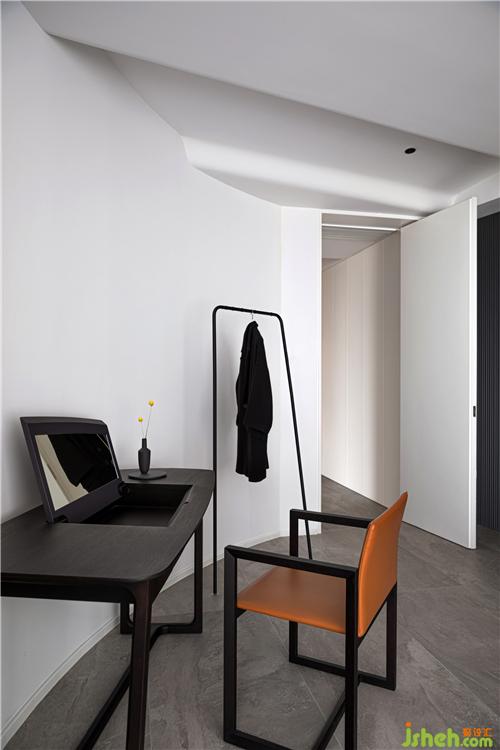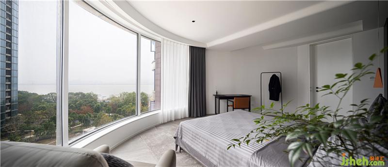 主臥延續(xù)了深灰色的基調(diào),床靠背景墻采用灰色波浪飾面板,杭州裝修設(shè)計(jì)整個空間沉穩(wěn)。